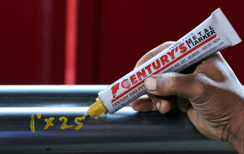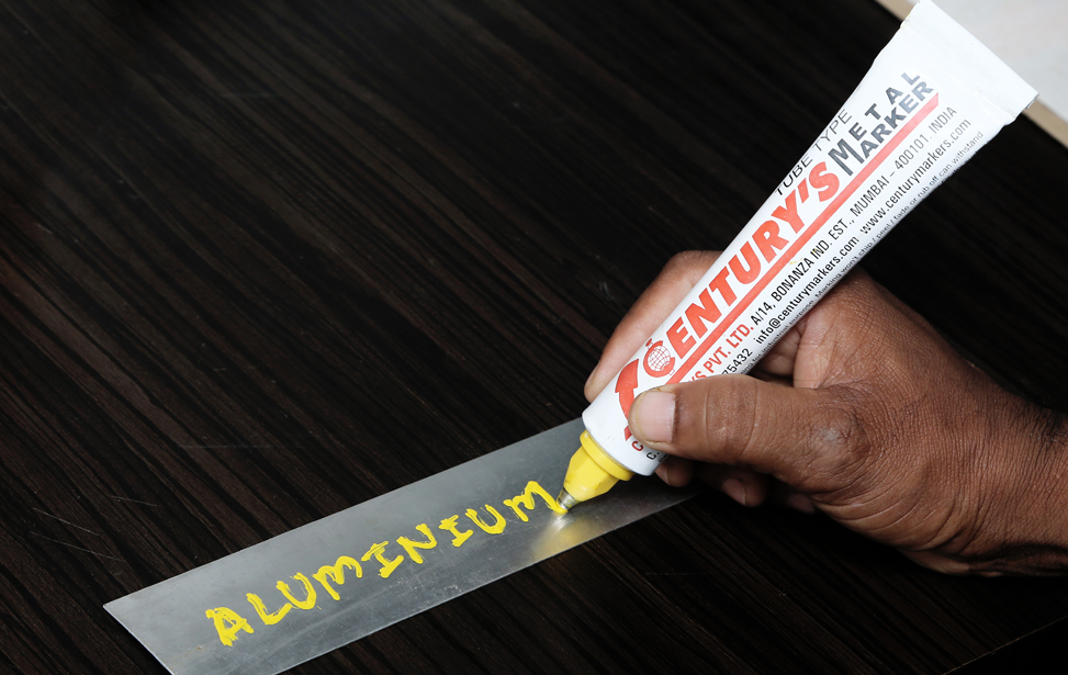 Century’s Tube Type Metal Marker is a unique marking device for permanent & fade-proof marking on any surface. Its an industrial grade ball-point marker which are bright, opaque & weather-proof. The markings made by the marker wont chip/peel/fade or rub off and it can withstand heat and weathering under adverse conditions. It has special viscous ink formulation similar to paint which remains permanent on steel, alloys, metals, concrete, glass, rubber, wood & even plastics. It can mark on wet, dry, dusty, oily, greasy & even extremely rough surfaces with ease. Its made of up of an aluminum tube filled with ink for making smooth and neat markings on any surface. The marker can also write under water.